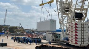 Loading of B37-M01 units onto a barge as part of the logistics and preparation stages for delivery to the project site.